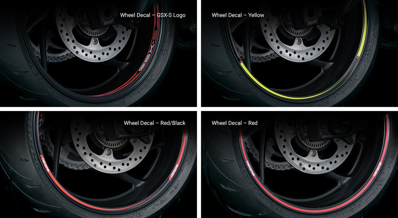 A variety of Genuine Suzuki Accessories are available, such as a solo seat cowl, meter visor (acts as a sport screen), billet clutch and brake levers, fuel tank and engine cover protectors, clip-on tank bags, plus a selection of GSX-S logo apparel.