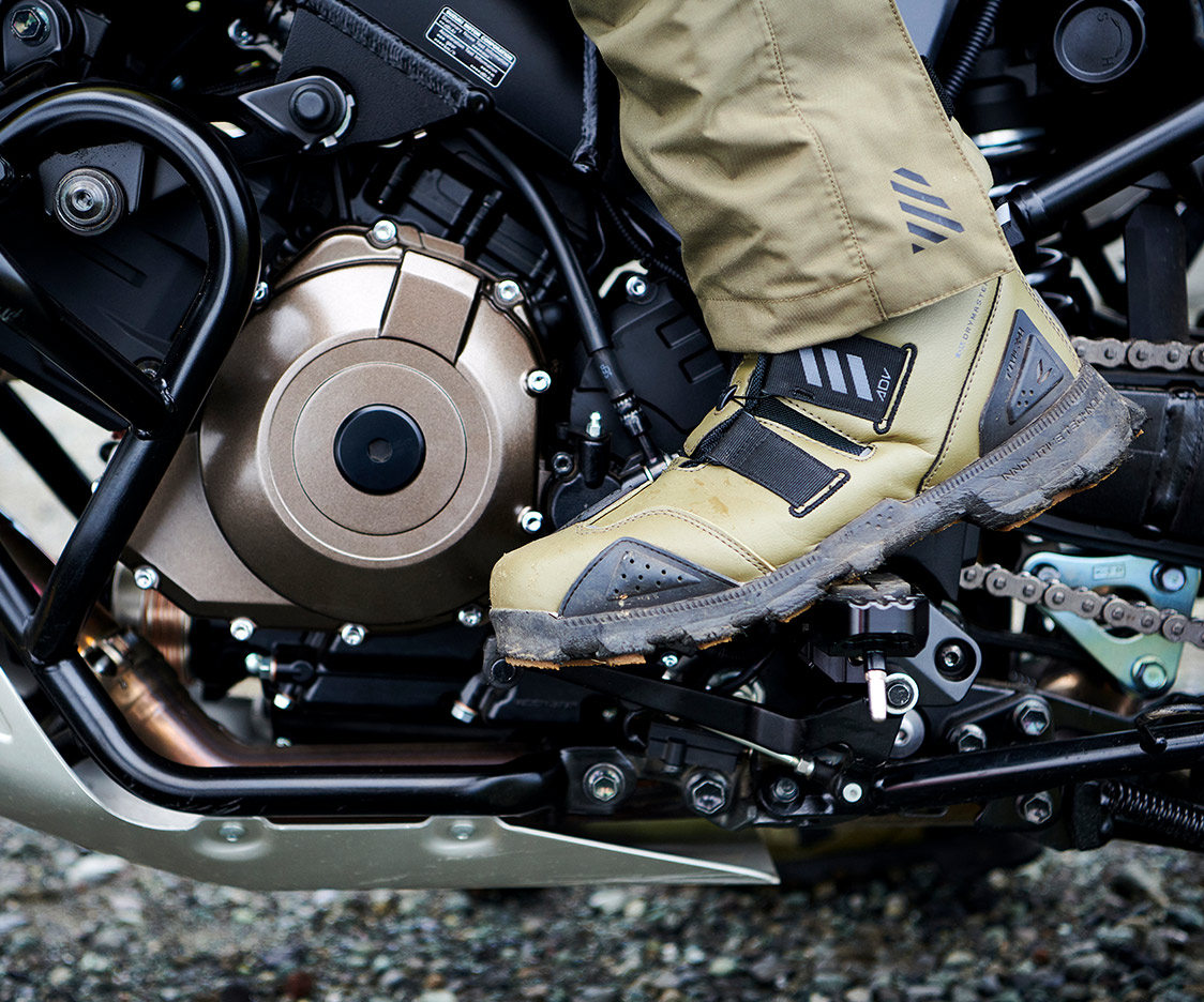 New, longer, more rigid swingarm and stronger sub-frame with directly mounted seat, along with wider steel foot pegs and wide, tapered aluminum handlebar provide ideal ADV ergonomics and handling.
