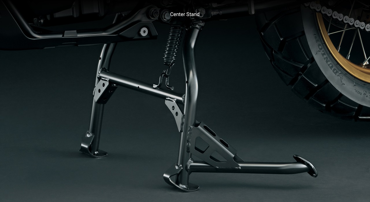- The side stand (and optional center stand) were designed to match the motorcycle’s tall ground clearance.