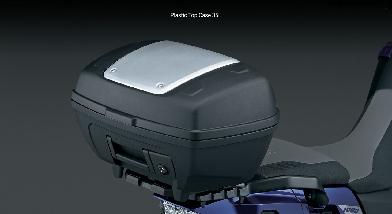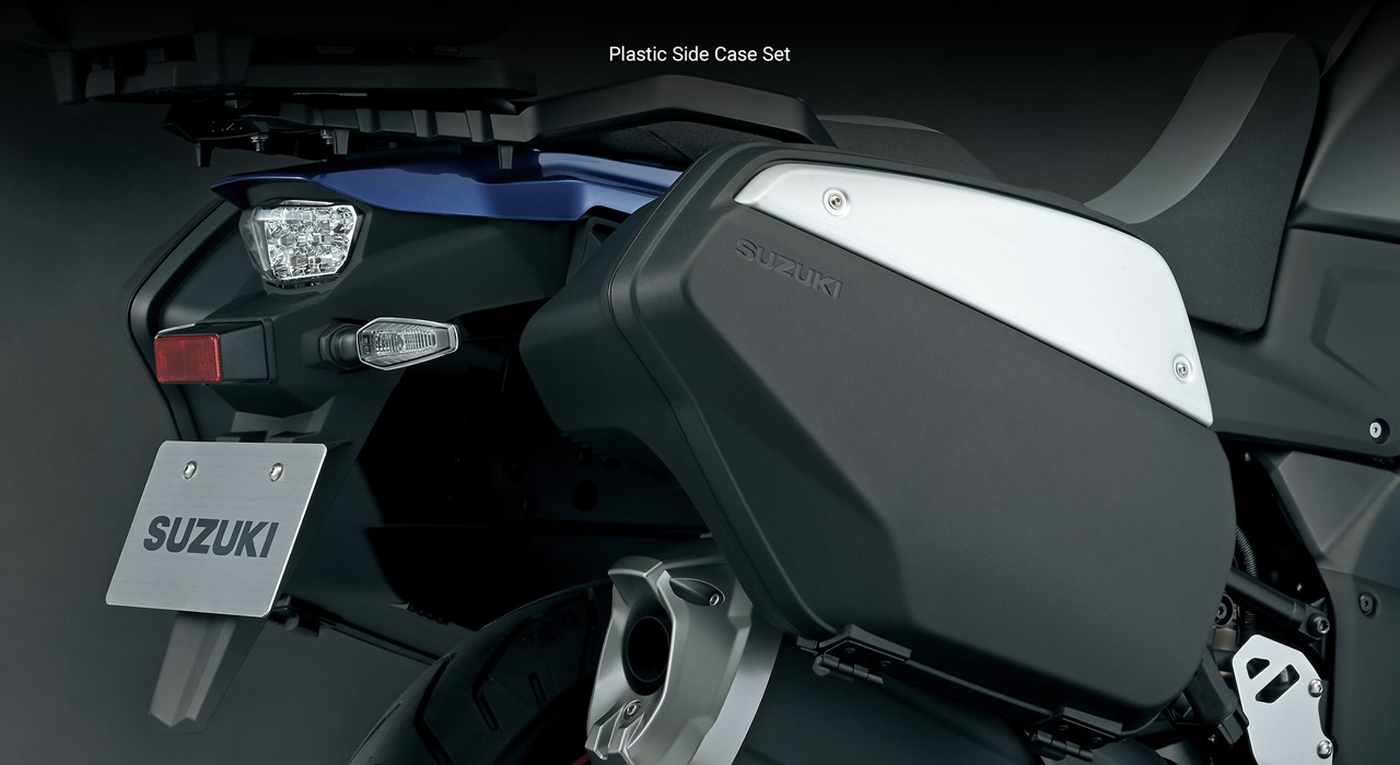 - Suzuki’s rugged accessory plastic side and top cases include locks that can be set by your Suzuki dealer to match the bike’s ignition key for true, one key operation.