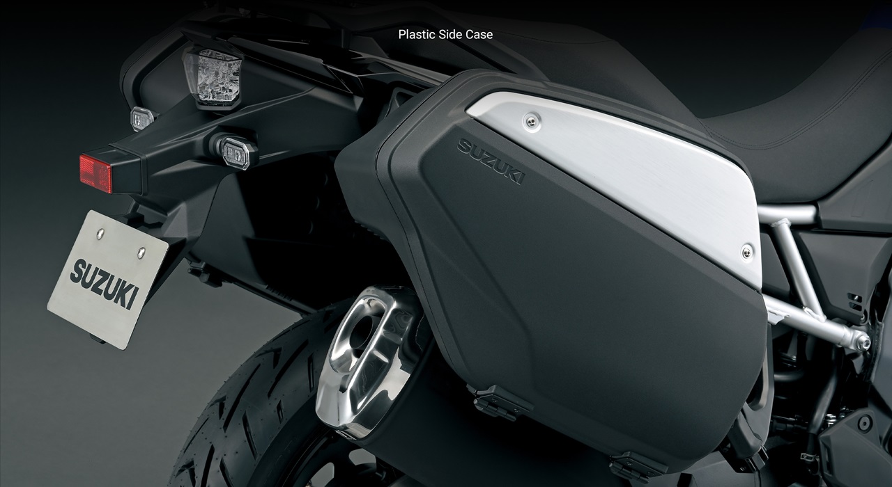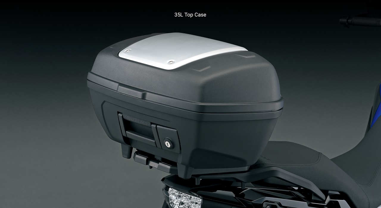 - Suzuki’s rugged plastic side and top cases include locks that can be set by your Suzuki dealer to match the bike’s ignition key for true, one key operation.