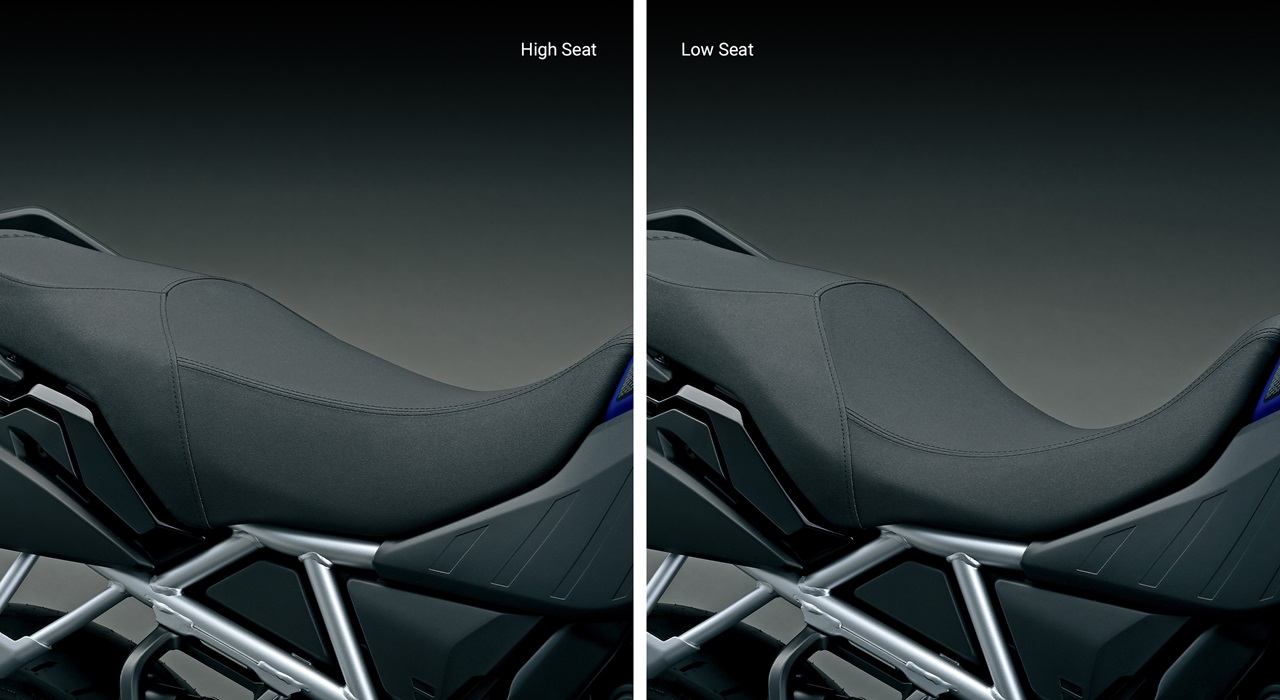 Engineered for touring comfort and everyday convenience the steel frame and sub-frame, and aluminum swingarm are supported by the new SHOWA SFF-BP (Separate Function Fork – Big Piston) fork and a gas-charged shock absorber with a hand-operated rear spring preload adjuster.