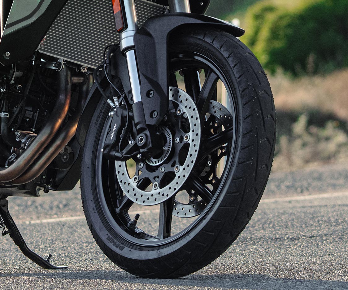 - Brakes FrontNissin, 4-piston calipers, dual 310mm discs, adjustable ABS-equipped