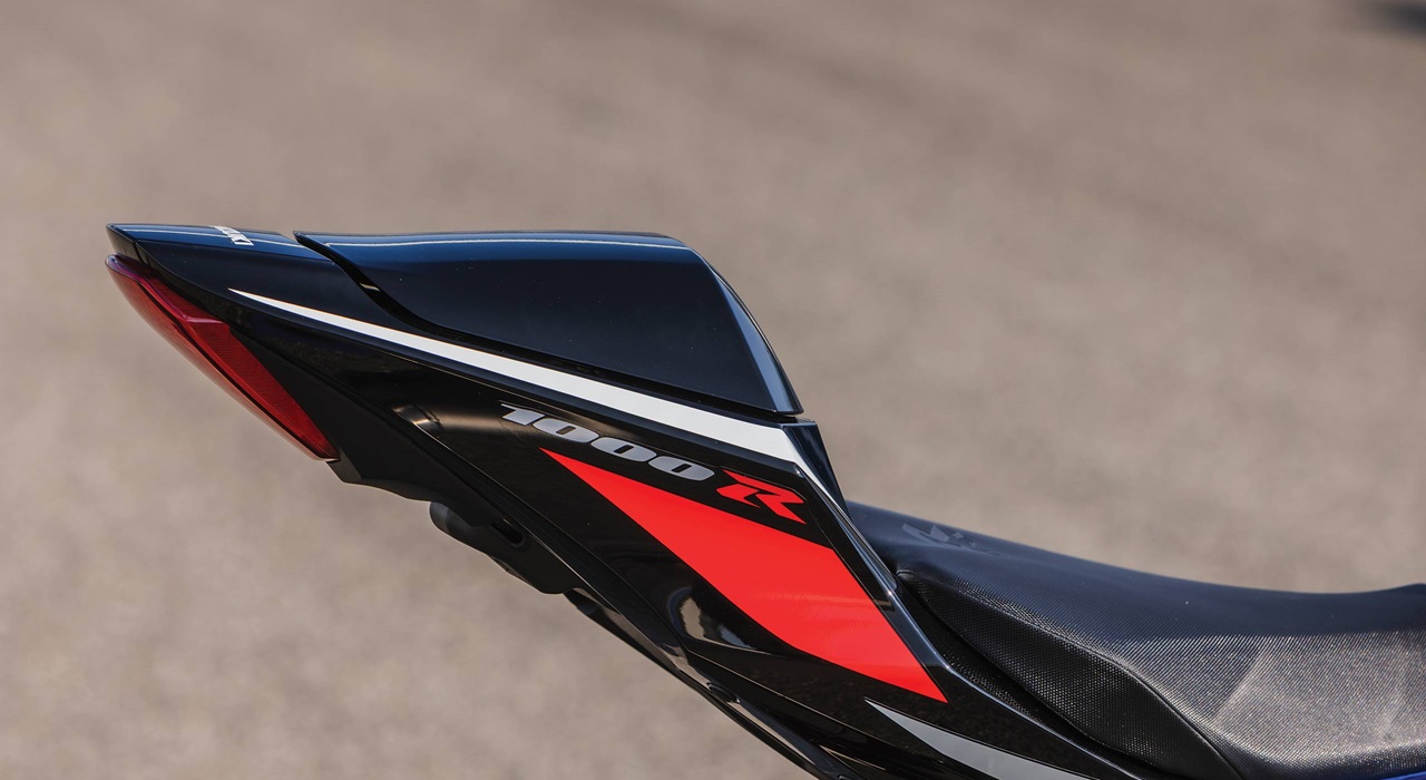 - The GSX-R logo is embossed into the rear section of the rider’s seat.