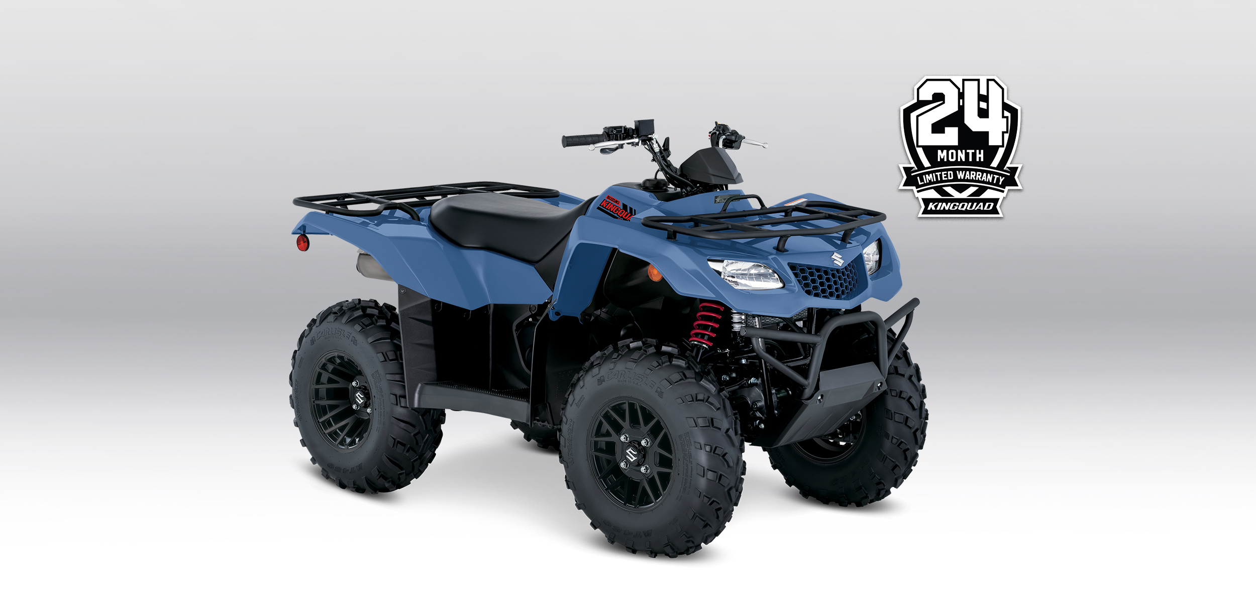 *A purchase of a new Suzuki KingQuad model will include a 24-month limited warranty and an additional 24-month Suzuki Extended Protection (SEP) vehicle service contract for a total combined coverage of 48 months. Available at participating Suzuki dealers in continental U.S. excluding HI. See dealer for details. Suzuki KingQuad ATV's may be used by those aged 16 and older. Offer valid from 11/01/2025 to 12/31/2025.