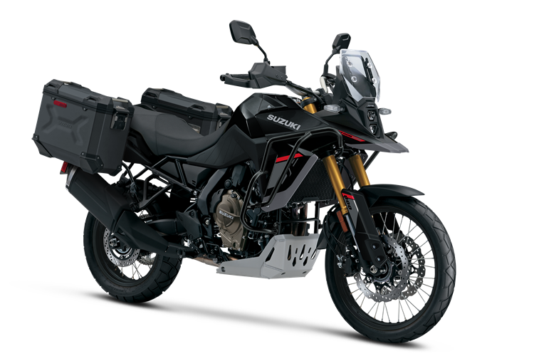 The V-STROM 800DE Adventure has a durable aluminum under cover. This thick aluminum “skid plate” provides additional engine and exhaust protection when riding over rocks and rough terrain. Also included are Suzuki’s ADV-style, 37-liter aluminum panniers that attach to powder-coated, stainless-steel carriers.